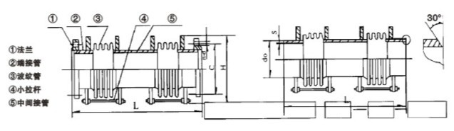 JXH型小拉桿橫向波紋補(bǔ)償器,由兩段波紋管,中間接管及帶有限位螺母的小拉桿等零件組成。小拉桿不能承受內(nèi)壓推理。JXH型小拉桿橫向波紋補(bǔ)償器可以補(bǔ)償彎曲管段的橫向位移和角項位移,同時可以補(bǔ)償軸向位移。JXH型小拉桿橫向波紋補(bǔ)償器安裝完后,務(wù)必將小拉桿上的落幕松開并離開耳片一段距離。