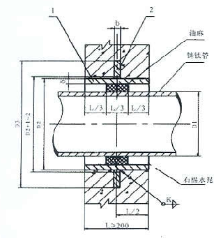 剛性防水套管(B型)(C 型)適用于管道穿墻處不承受管道振動(dòng)和伸縮變形的構(gòu)(建)筑物。對(duì)于有地震設(shè)防要求的地區(qū),如采用剛性防水套管,應(yīng)在進(jìn)入池壁或建筑物外墻的管道上就近設(shè)置柔性連接。B型和C型適用于球墨鑄鐵鋼管及鑄鐵管。